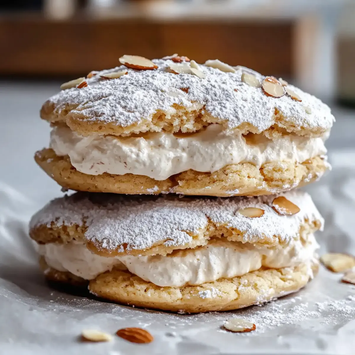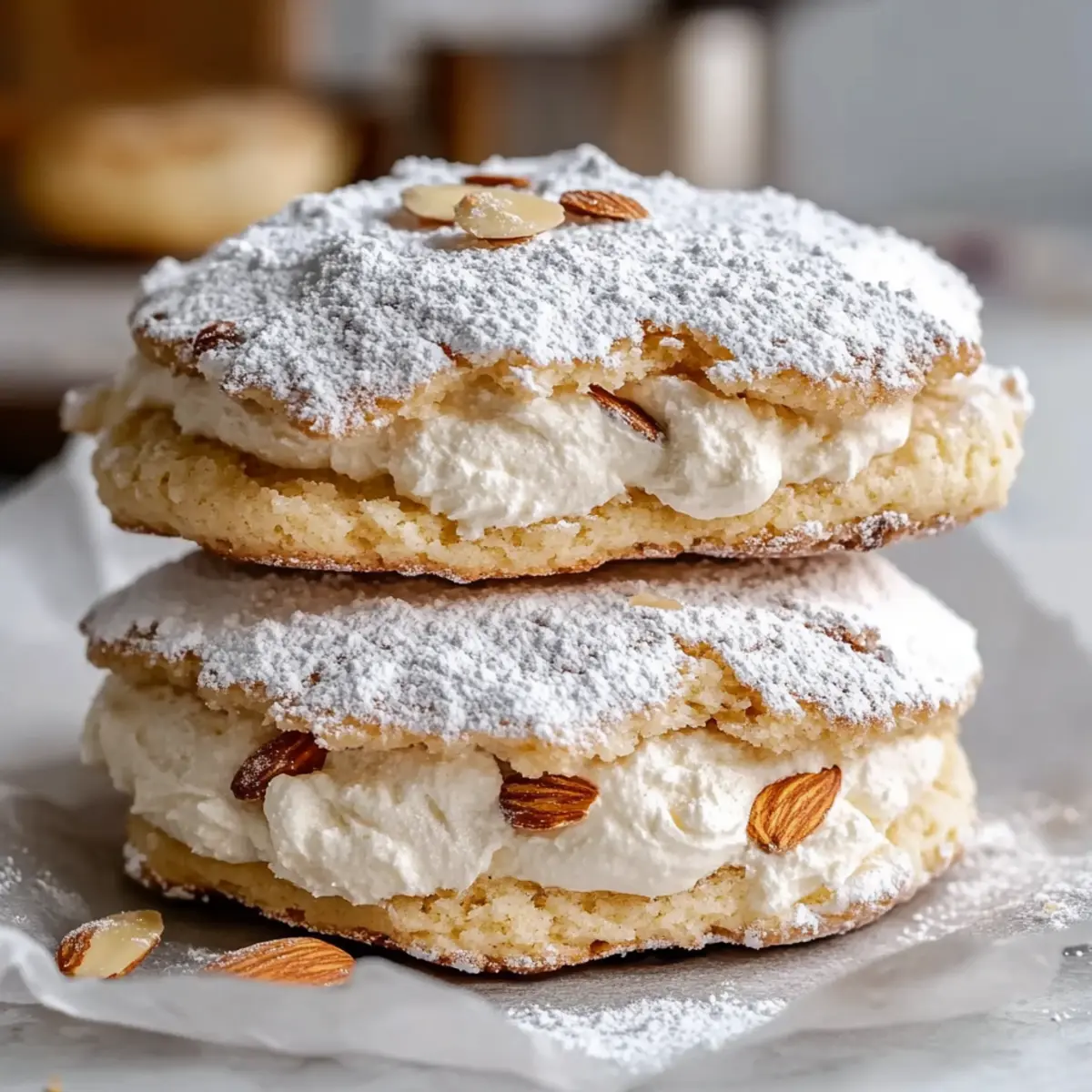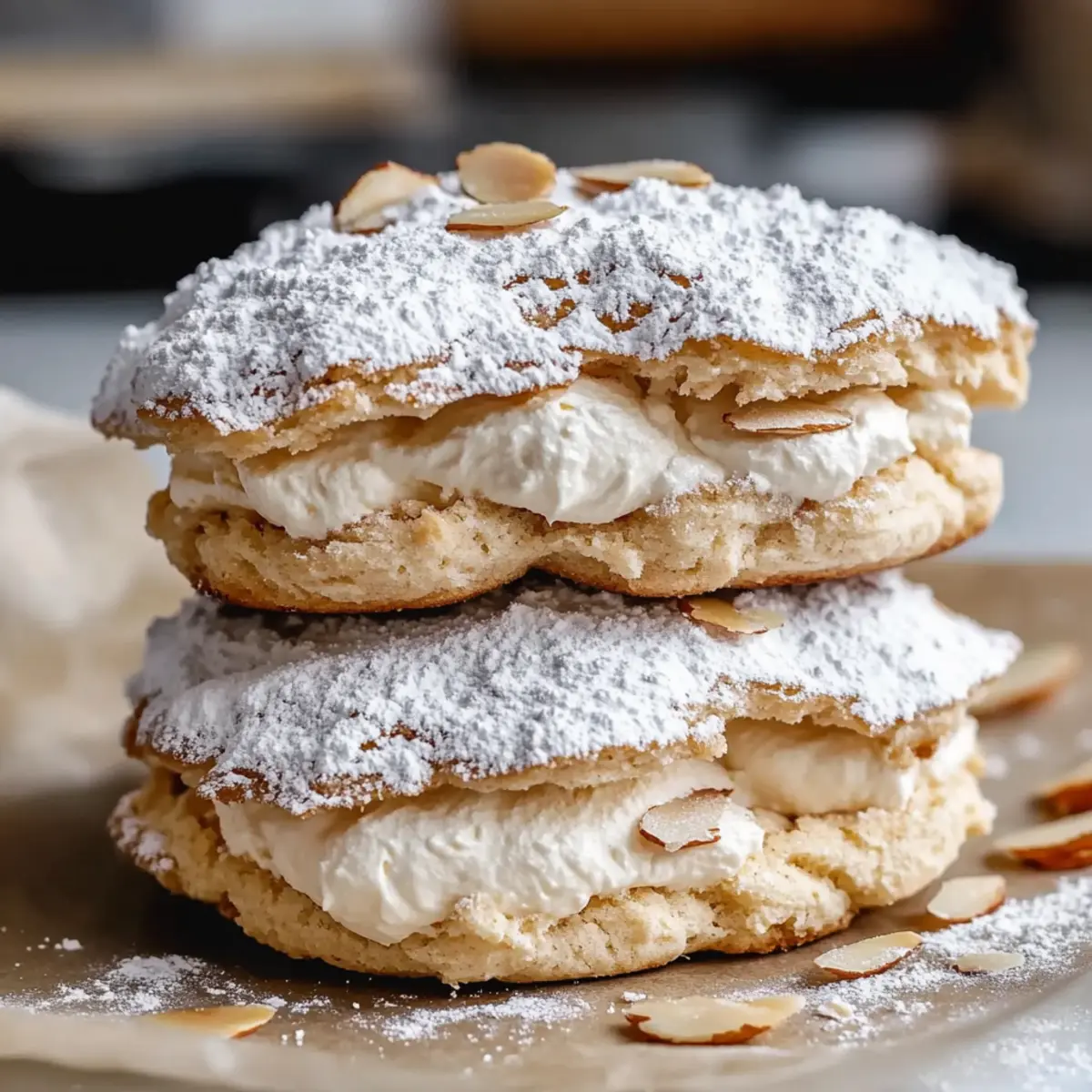 These Almond Dacquoise Cream Clouds are an ideal choice for meal prep, allowing you to savor gourmet desserts without the last-minute rush! You can prepare the meringue layers up to 2 days in advance; simply store them in an airtight container at room temperature to keep them crisp. The cream filling can also be whipped up to 24 hours before serving—just be sure to refrigerate it to maintain its lightness. When you’re ready to impress, simply assemble the cream filling between the meringue discs and dust with powdered sugar. This way, you’ll have elegant, homemade treats ready to dazzle your guests with minimal effort!