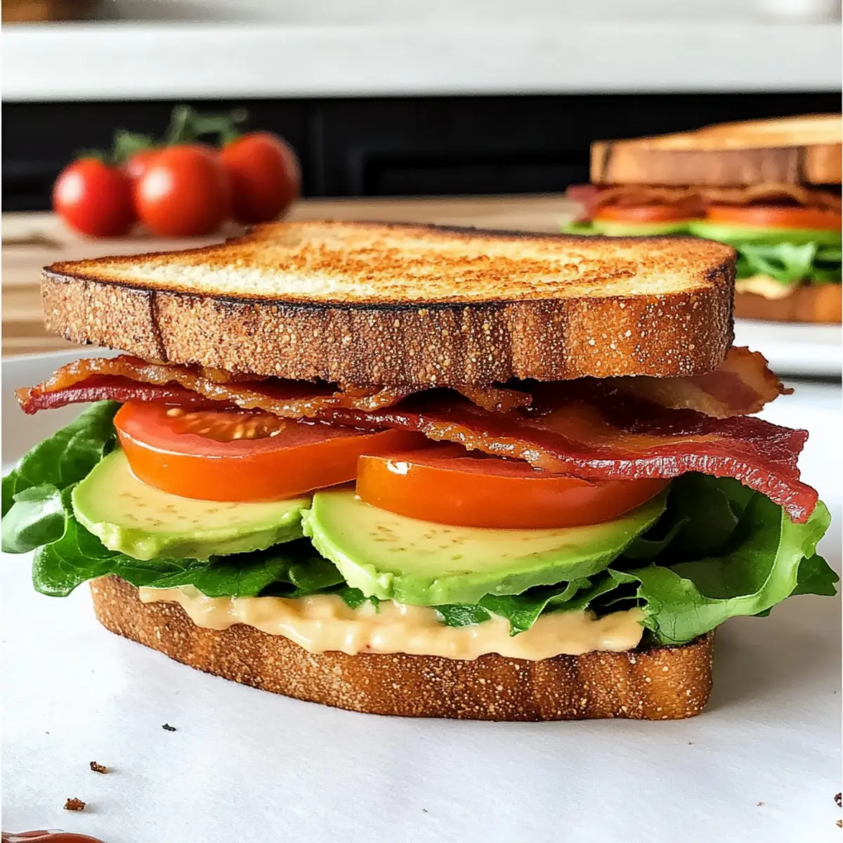 - Assemble the Sandwiches: Spread spicy mayo on the toasted bread, layer bacon, tomato, avocado, and lettuce, then top with the other slice.