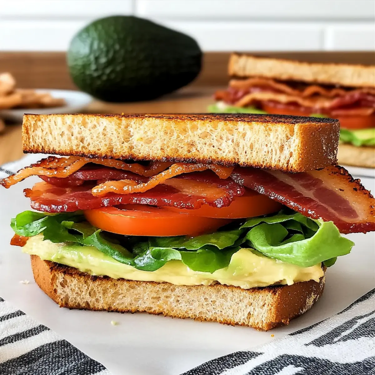 These BLTA Sandwiches are a fantastic choice for meal prep enthusiasts! You can cook the bacon and make the spicy mayo up to 3 days in advance; simply store them separately in airtight containers in the refrigerator to maintain quality. For the best avocado and tomato freshness, slice these components just before serving, but you can prepare the lettuce and keep it wrapped in a damp paper towel to stay crisp for up to 24 hours. When you’re ready to enjoy your sandwiches, toast the bread fresh and assemble all the components—this way, you’ll have restaurant-quality results with minimal effort, making busy days much easier!