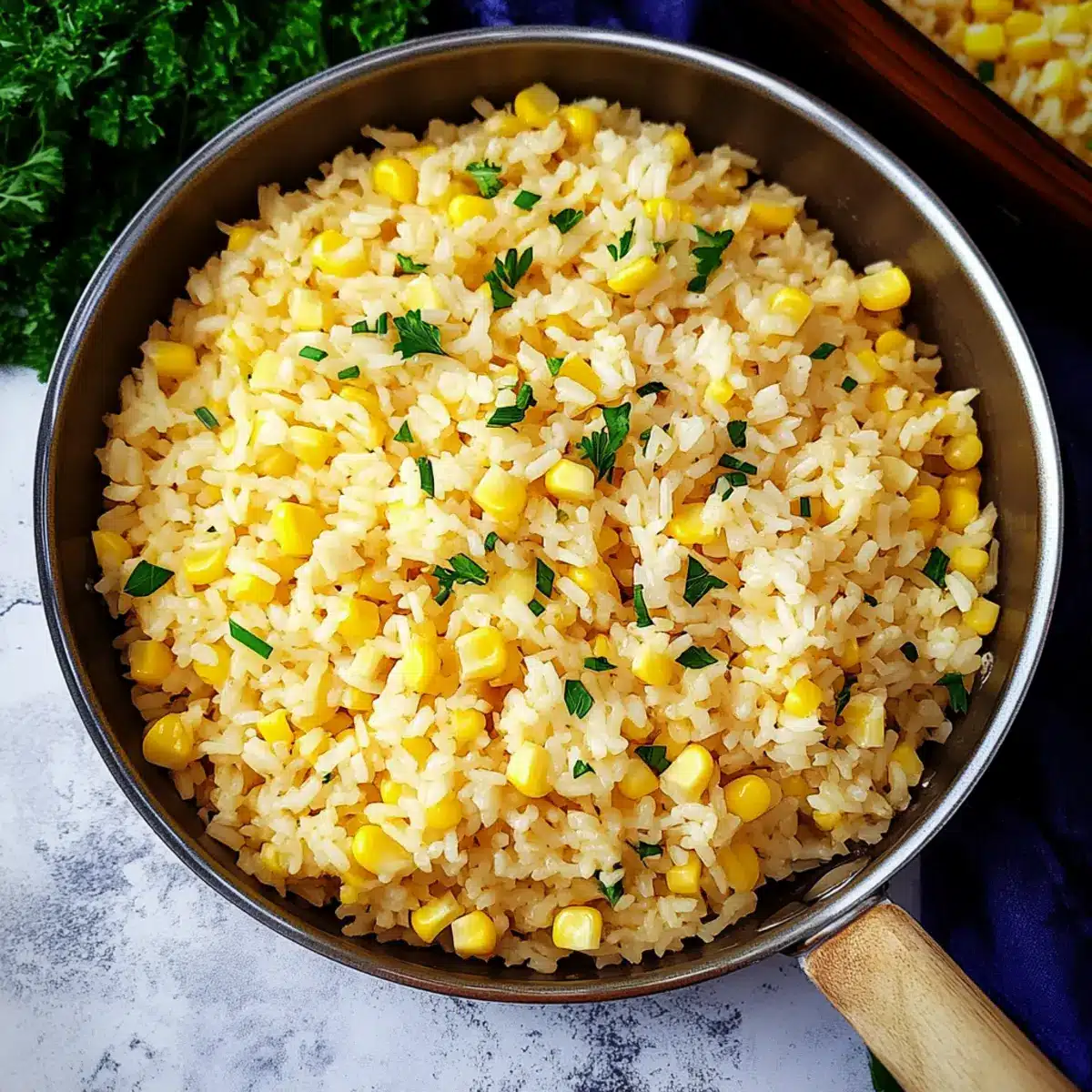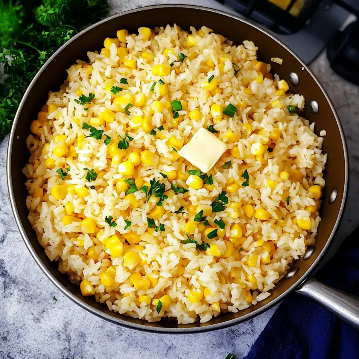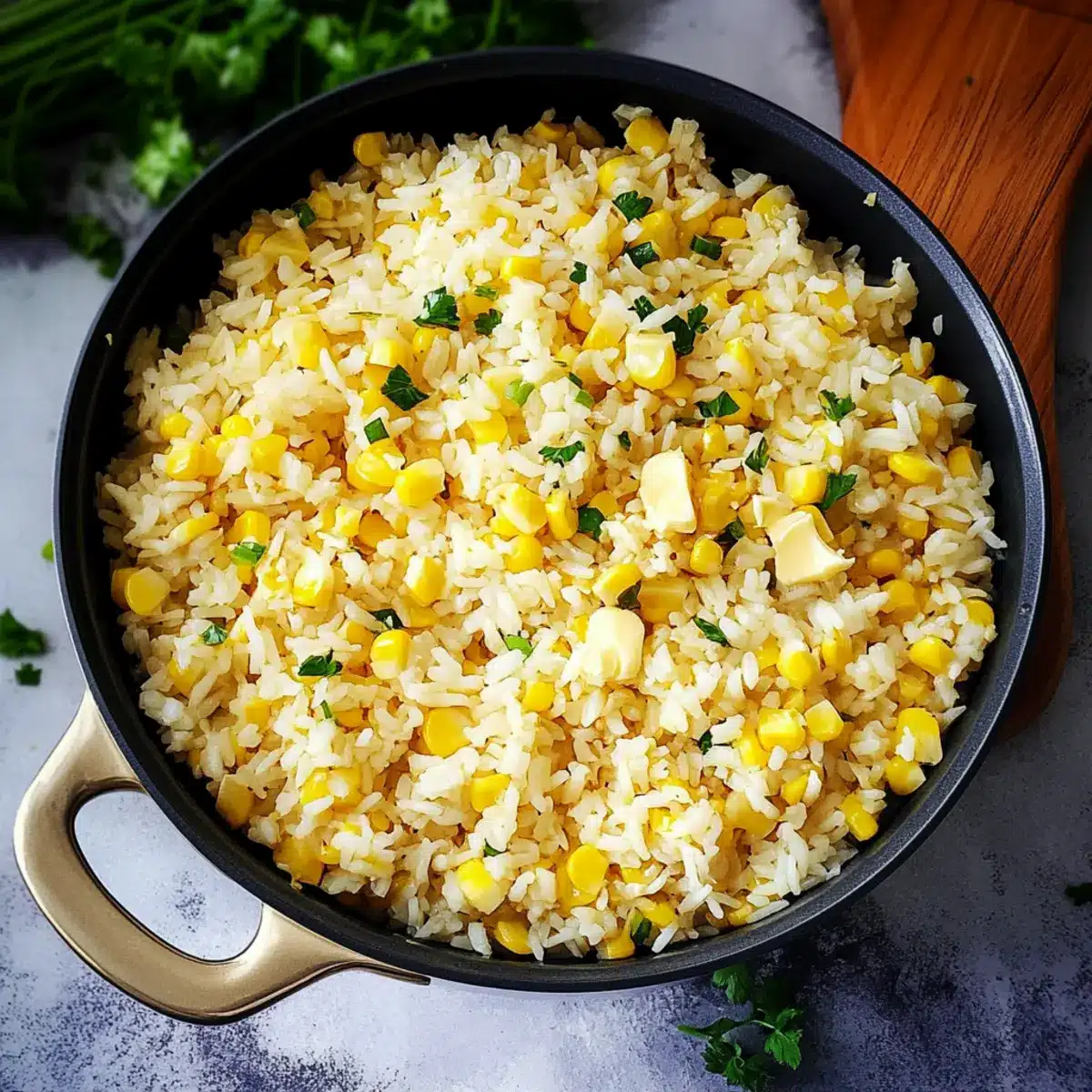 Remove the lid and gently fluff the rice with a fork, separating the grains. If desired, stir in chopped parsley and sliced green onions for a fresh touch. Serve your delicious Buttered Corn Rice warm, and watch it become a beloved side at your dinner table!