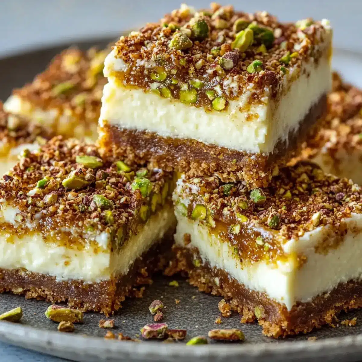 Dreamy Greek Honey Pistachio Cheesecake Bars to Savor