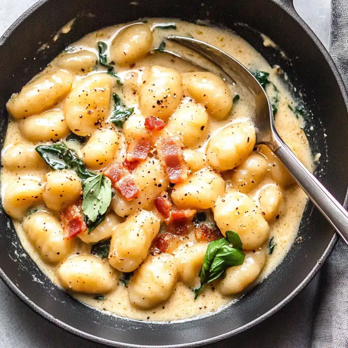 Satisfy Your Cravings with Potato Gnocchi in Bacon Spinach Cream Sauce