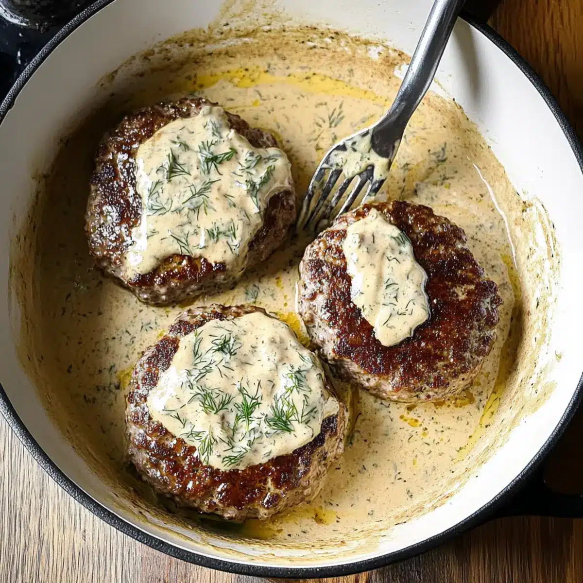Savory Hamburger Steaks in Creamy Dill Sauce Delight