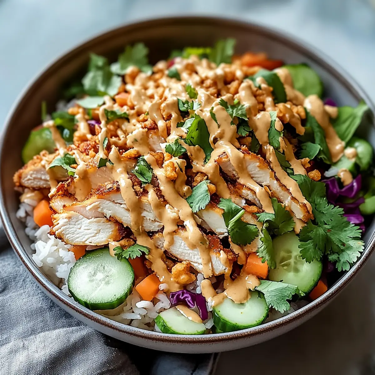 Chicken Crispy Rice Salad with Creamy Peanut Bliss