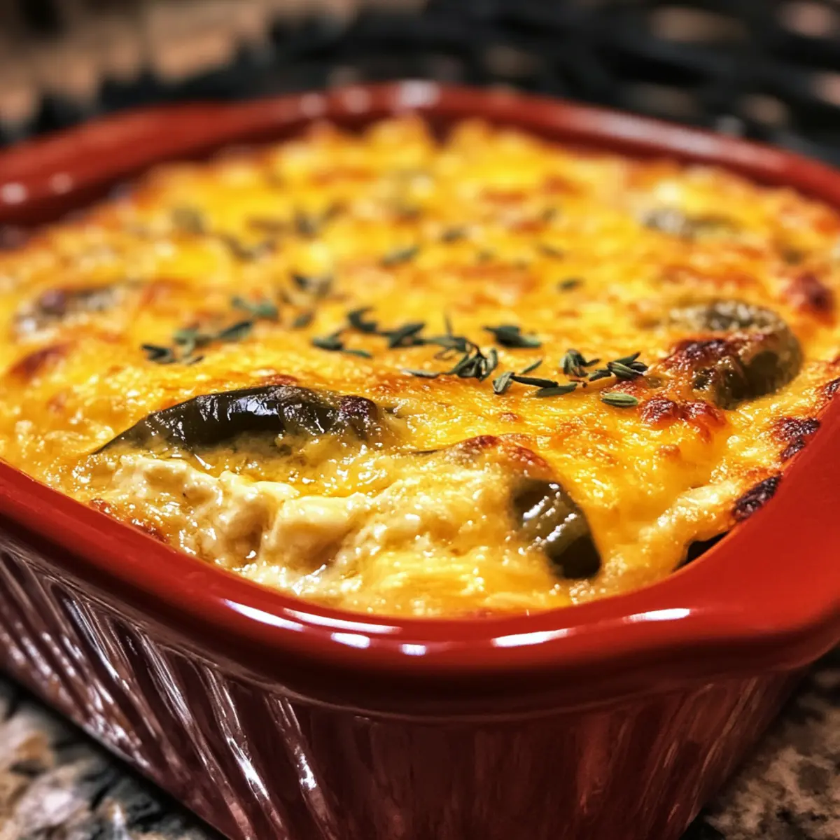 The captivating aroma of roasted green chiles fills the kitchen as I pull my latest creation from the oven—Comforting Chile Rellenos Casserole. This dish reimagines a classic Mexican favorite, delivering all the bold flavors and heartwarming comfort of traditional Chile Rellenos in an effortless one-pan format. Not only is it vegetarian-friendly, but this make-ahead casserole also promises to steal the spotlight at any meal, from cozy family dinners to lively brunches with friends. Each serving combines fluffy baked eggs with layers of gooey cheese and peppery chiles, wrapped in a satisfying embrace that beckons for seconds. What will you add to your own version to make it uniquely yours?