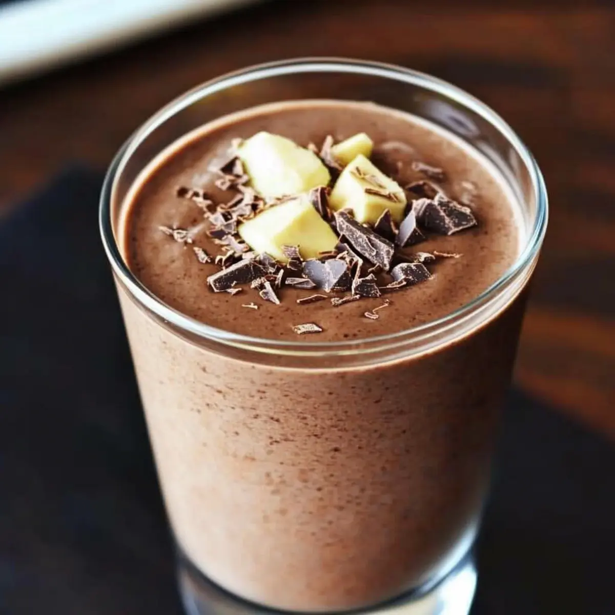 Add 1 tablespoon of chia seeds into the blender. Not only do they provide a nutritional punch, but they also help thicken the smoothie. Their neutral flavor won’t overpower the chocolatey goodness, ensuring a balanced taste.
