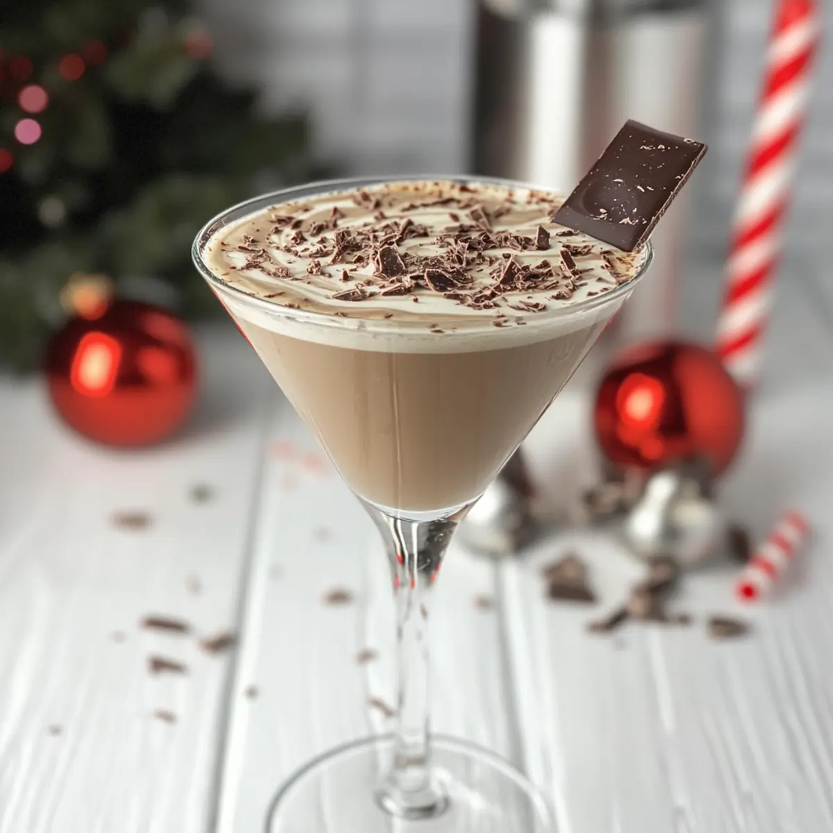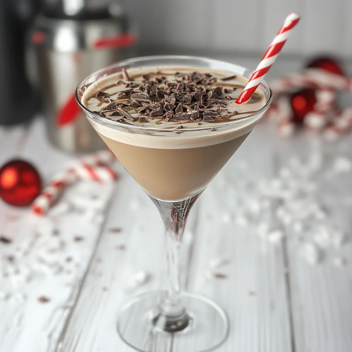 Present the finished Chocolate Peppermint Martini with a festive smile! Optional: Pair it with some holiday-themed snacks like peppermint bark for the perfect celebration. This delightful cocktail is now ready to be savored, bringing warmth and cheer to your holiday gatherings.