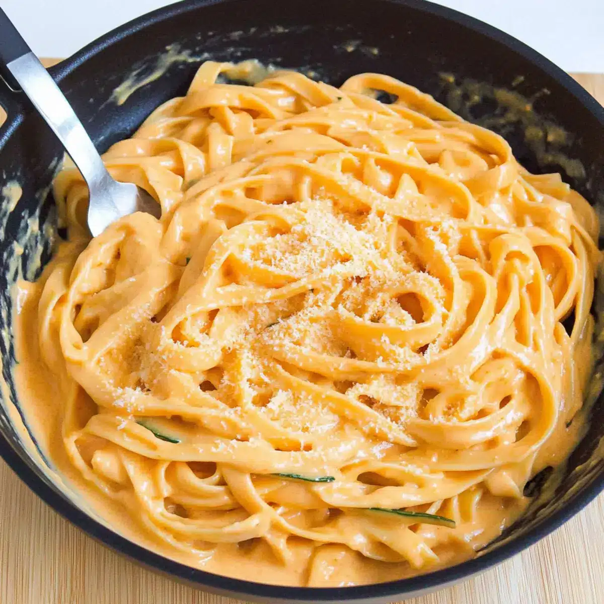 Fridge: Store any leftover creamy red pepper Alfredo pasta in an airtight container for up to 5 days. Reheat gently on the stove or microwave, stirring well to maintain creaminess.
