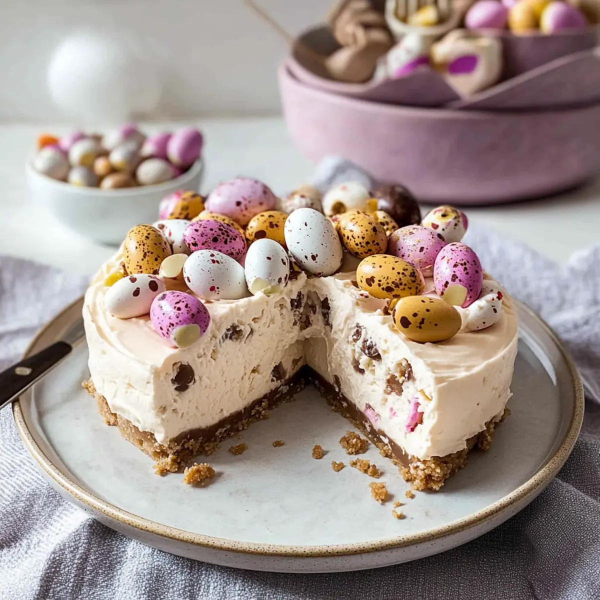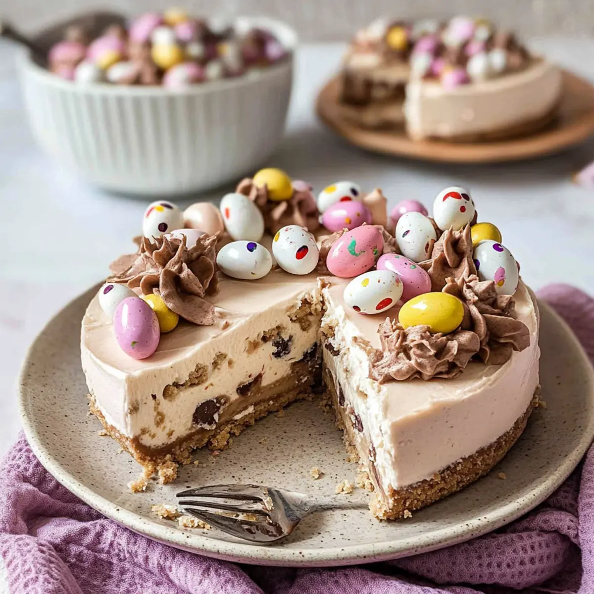 Festive Appeal: The colorful Cadbury Mini Eggs not only add a fun crunch but also elevate the dessert’s visual charm, making it perfect for Easter celebrations.