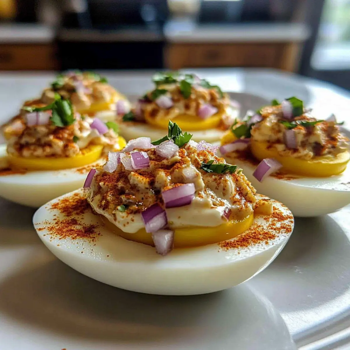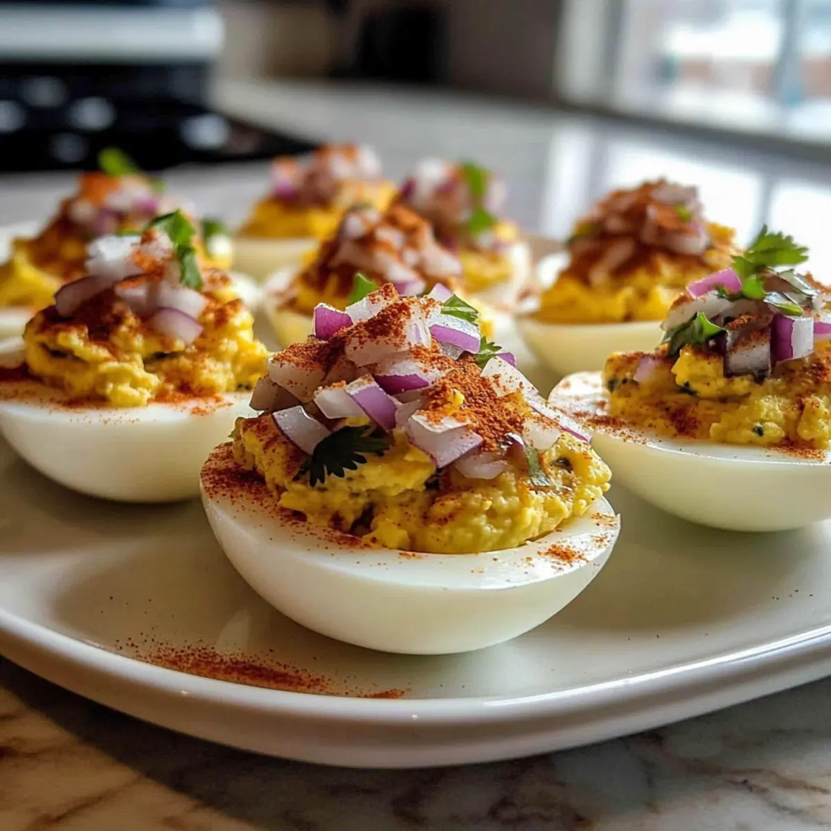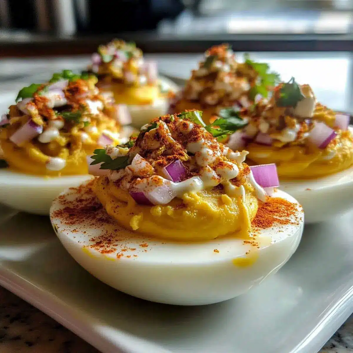 Creamy Elote Deviled Eggs with Chipotle Mayo Twist