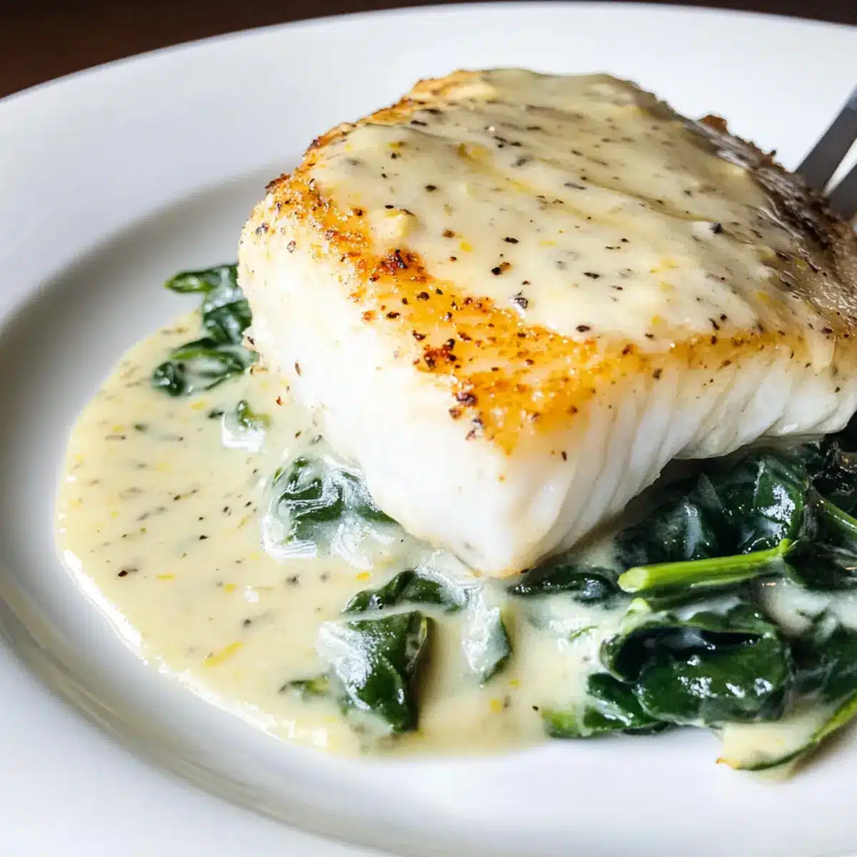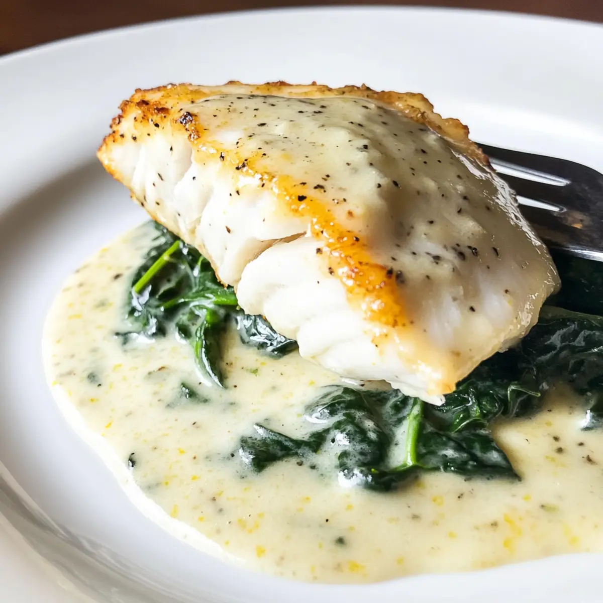 - Layer sautéed spinach on the foil, place Chilean sea bass on top, and pour the cream sauce over the fish.