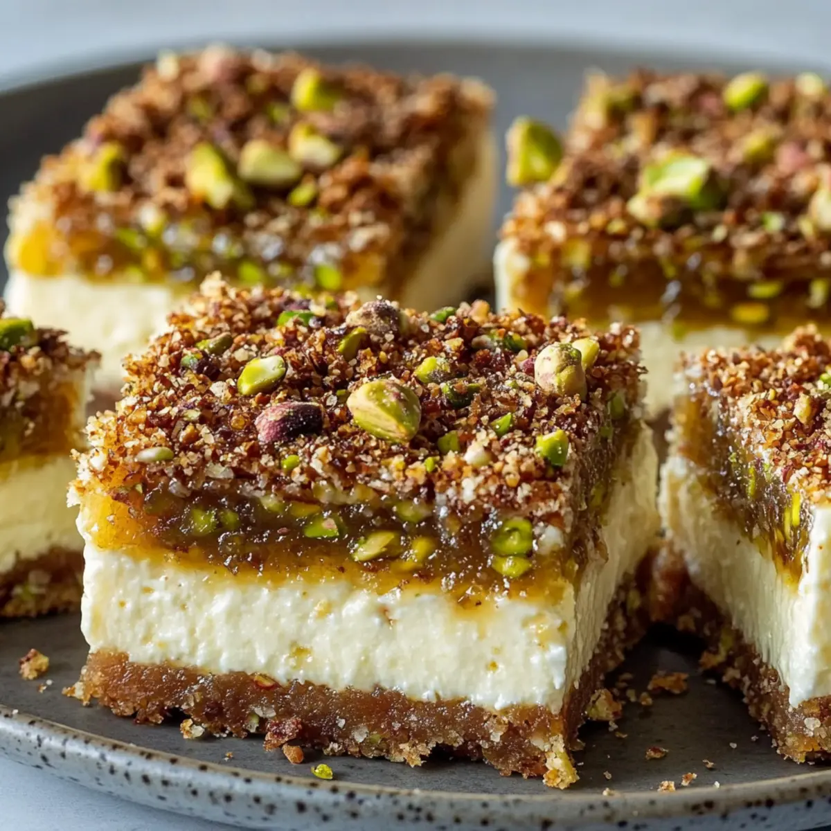 Dreamy Greek Honey Pistachio Cheesecake Bars to Savor
