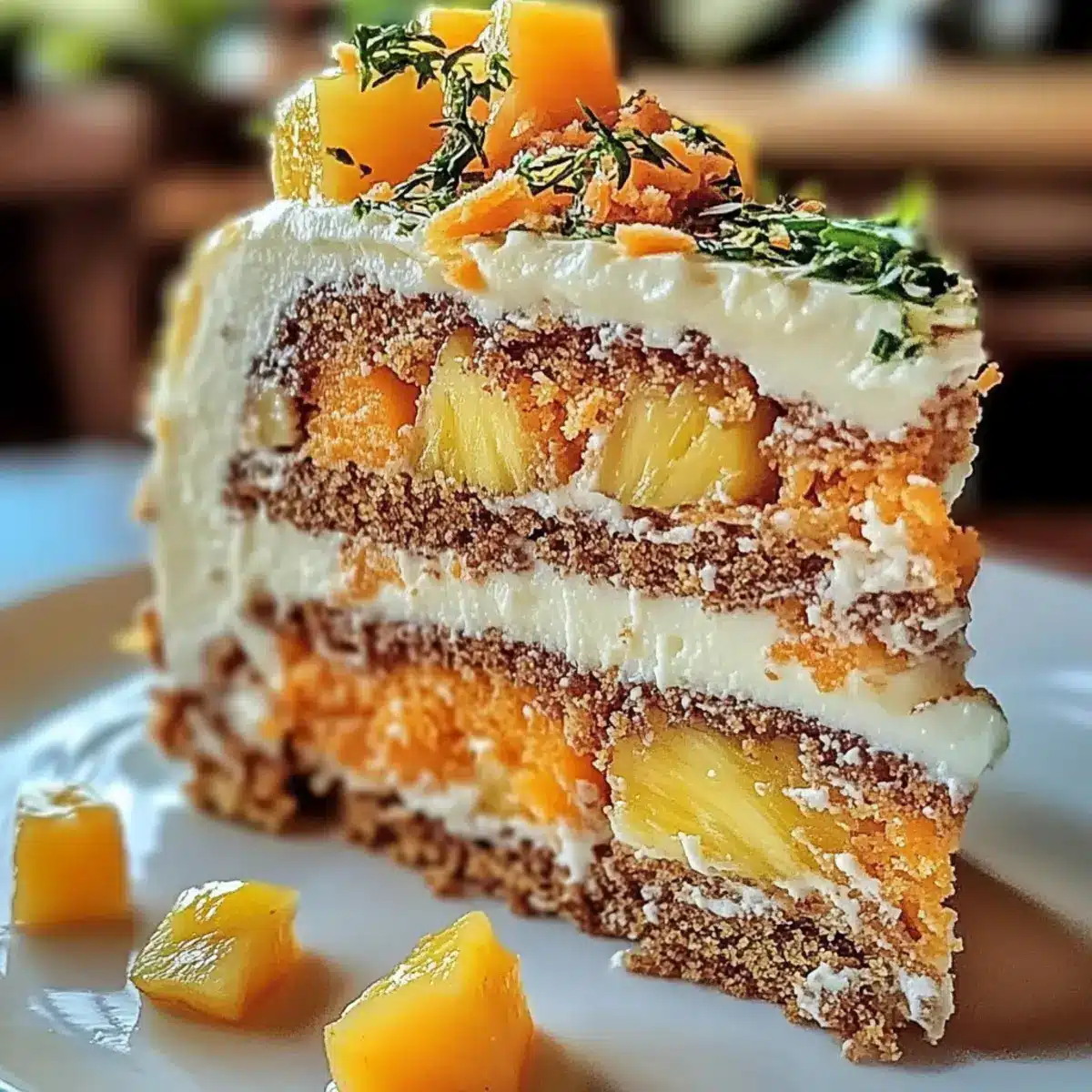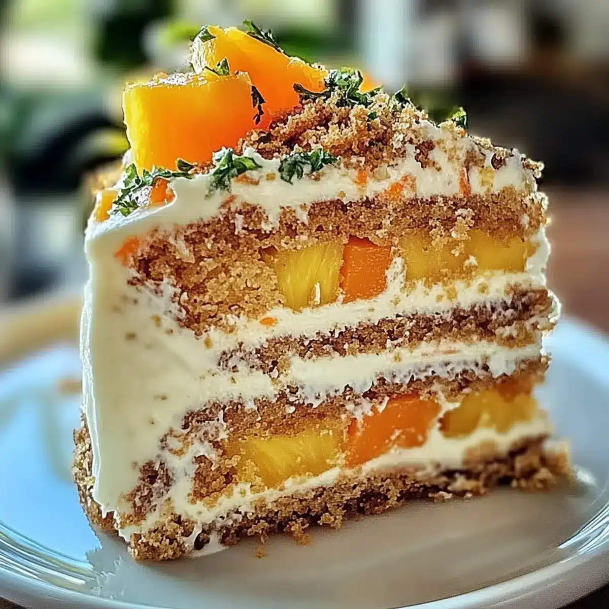 Tropical Delight: The combination of shredded carrots and crushed pineapple creates a moist cake that bursts with flavor, reminiscent of a beach getaway.