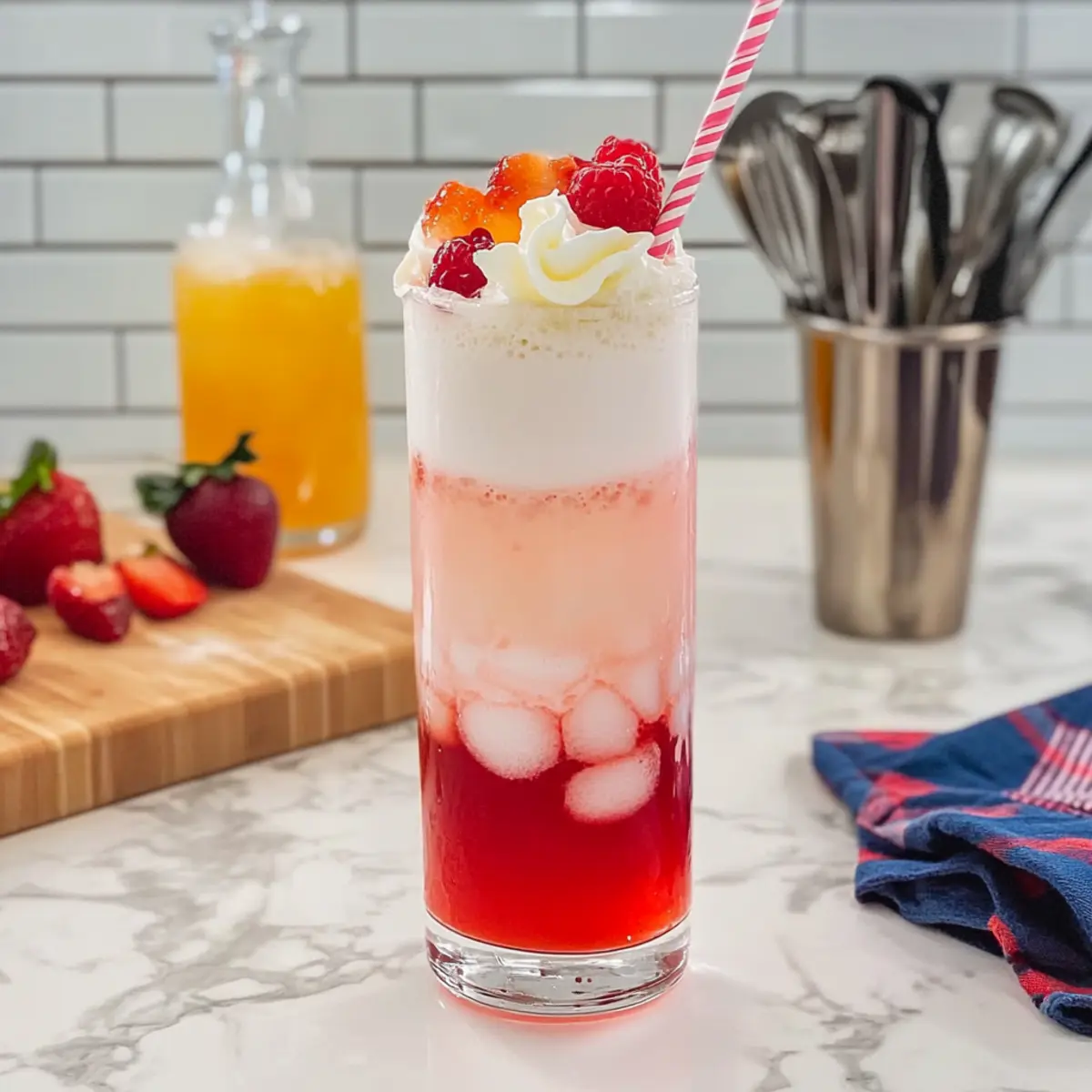 As I stirred the fizzy concoction in my glass, I couldn’t help but marvel at the vibrant colors swirling together—my homemade Italian Cream Soda was ready to take center stage! This refreshing drink is not just for the kids; it’s perfect for those warm summer days when you crave a little sweetness without reaching for store-bought alternatives. With just a few simple ingredients—ice, fizzy club soda, and your choice of fruity syrup—this crowd-pleaser is quick to whip up and entirely customizable. Whether you prefer classic flavors like cherry and vanilla or want to get adventurous with peach and hazelnut, the possibilities are endless. Why not turn your kitchen into a soda bar and let your creativity flow? What flavor combination will you create today?