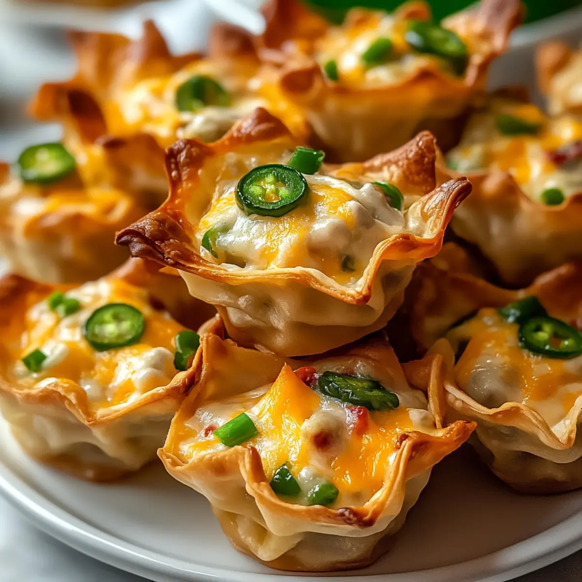 Serving Suggestions: Don’t forget to pair your crispy jalapeño popper wonton cups with a tangy ranch dip or blue cheese dressing. These creamy dips complement the spicy crunch beautifully!