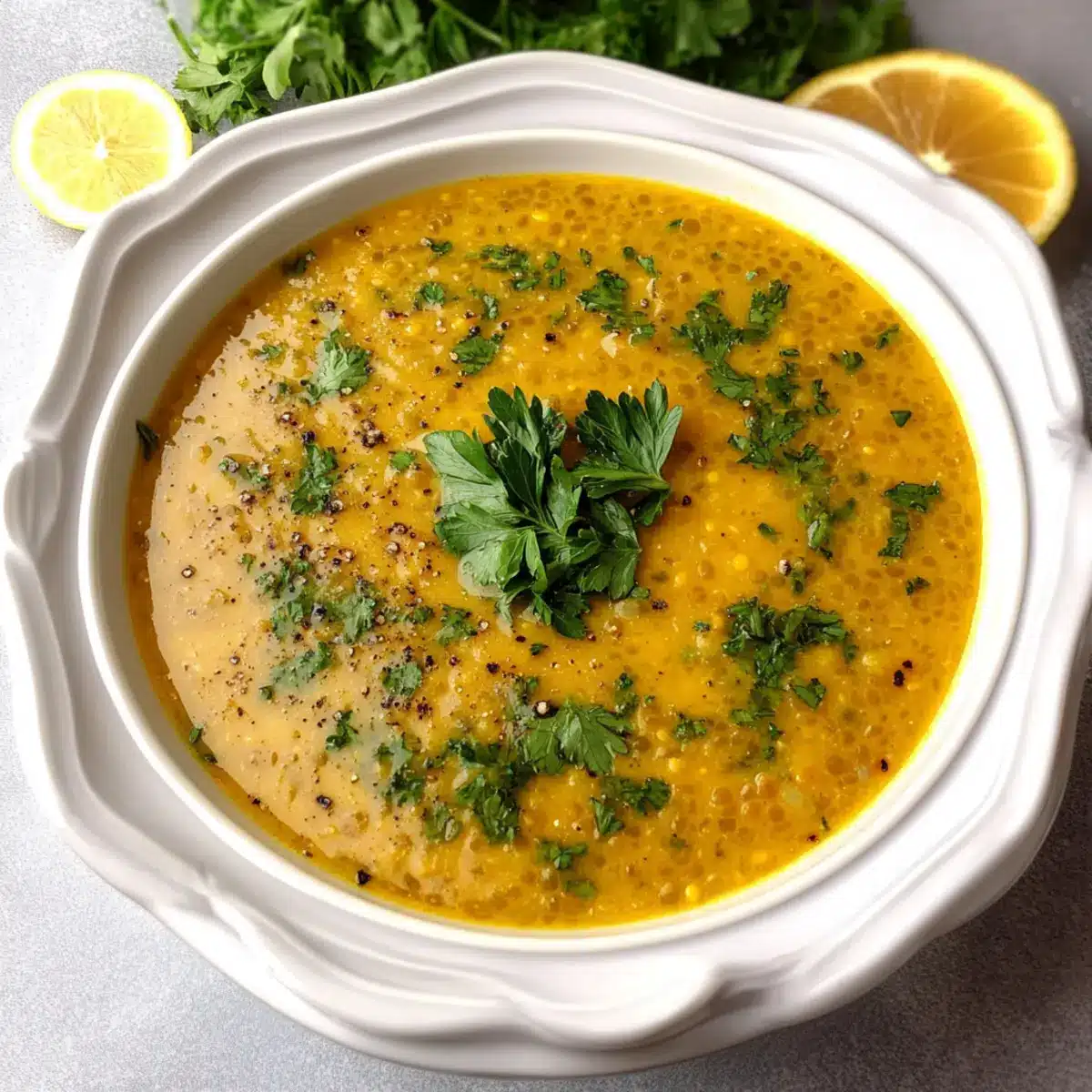 Ladle the warm Lebanese Lentil Soup into bowls, garnishing each serving with a sprinkle of freshly chopped parsley and a drizzle of olive oil for added richness. Pair it with warm pita bread for a delightful dining experience.