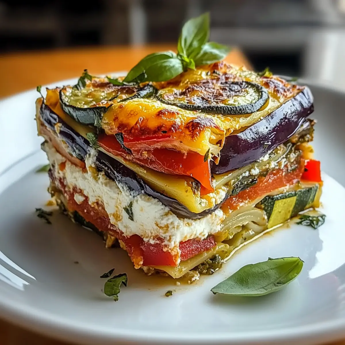 Slice your gorgeous lasagna and garnish with fresh basil leaves for a pop of color and flavor. This not only enhances presentation but also adds a fragrant, fresh finish. Serve warm and enjoy the delightful blend of roasted vegetables and creamy cheeses that make this dish truly special.