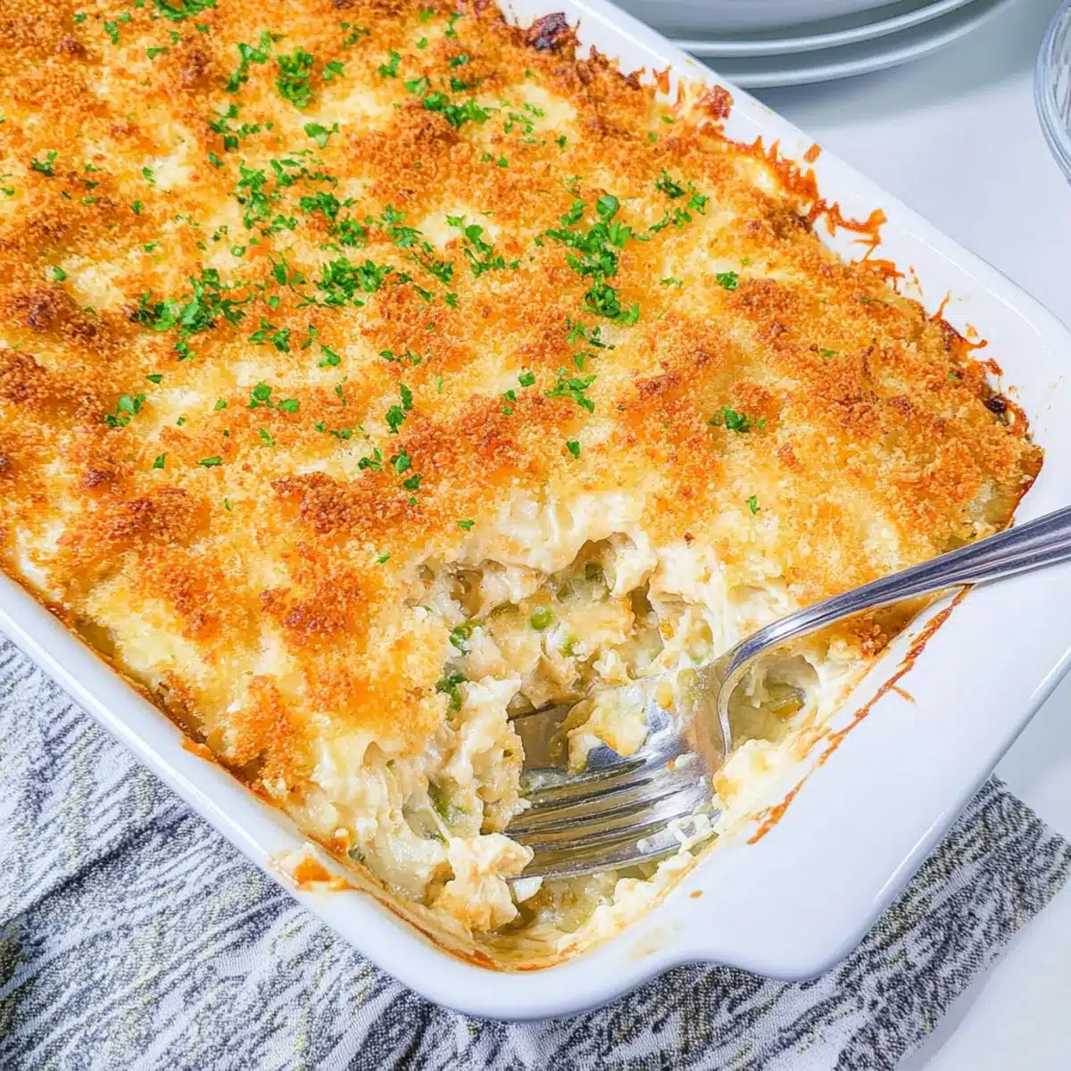 Comforting, Hearty Meal: This casserole is the epitome of comfort food, blending hearty chicken with a creamy, rich sauce that everyone loves.