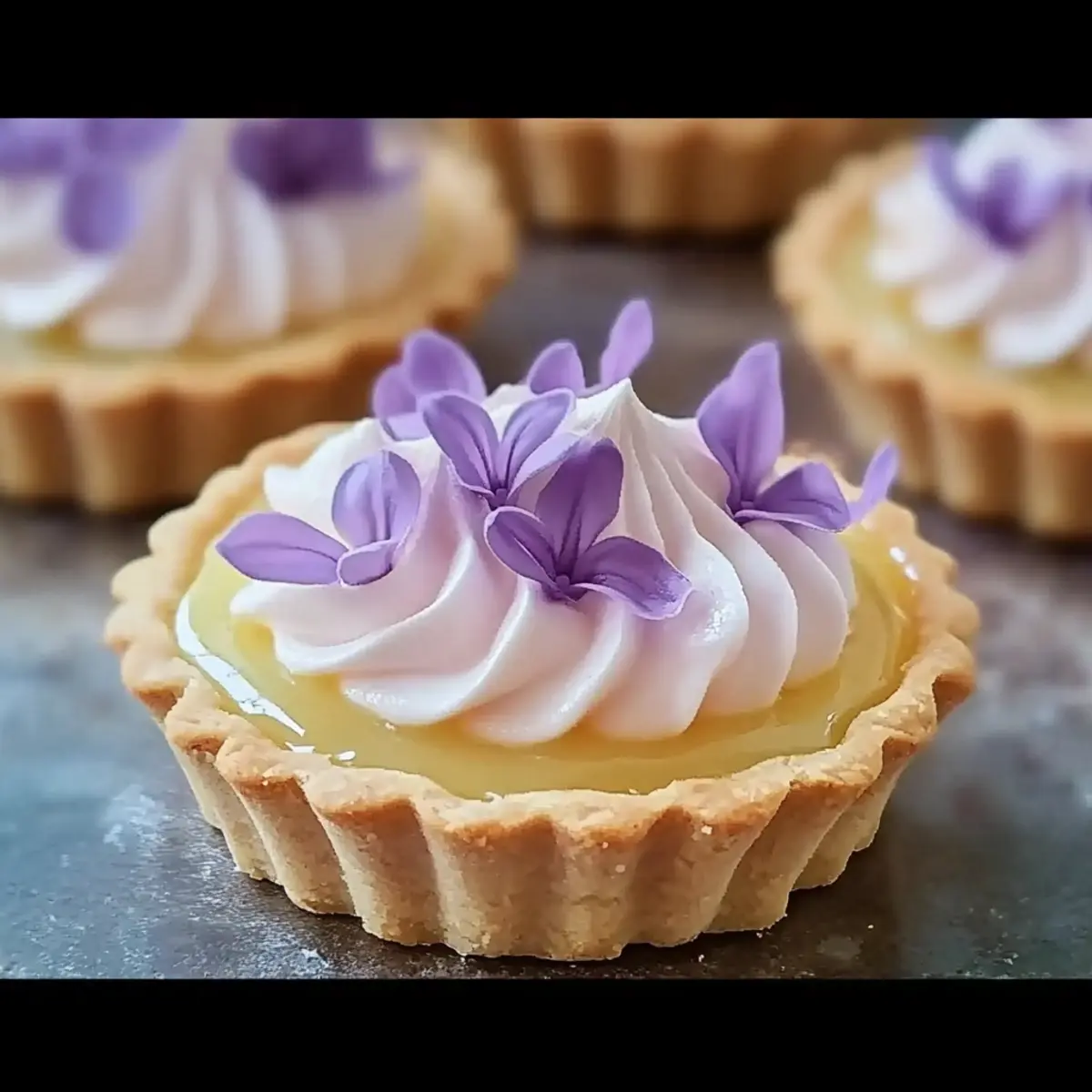 - Assemble and Garnish: Pipe meringue onto cooled lemon curd tarts and lightly toast with a kitchen torch. Garnish with edible lilac petals or dried lavender.