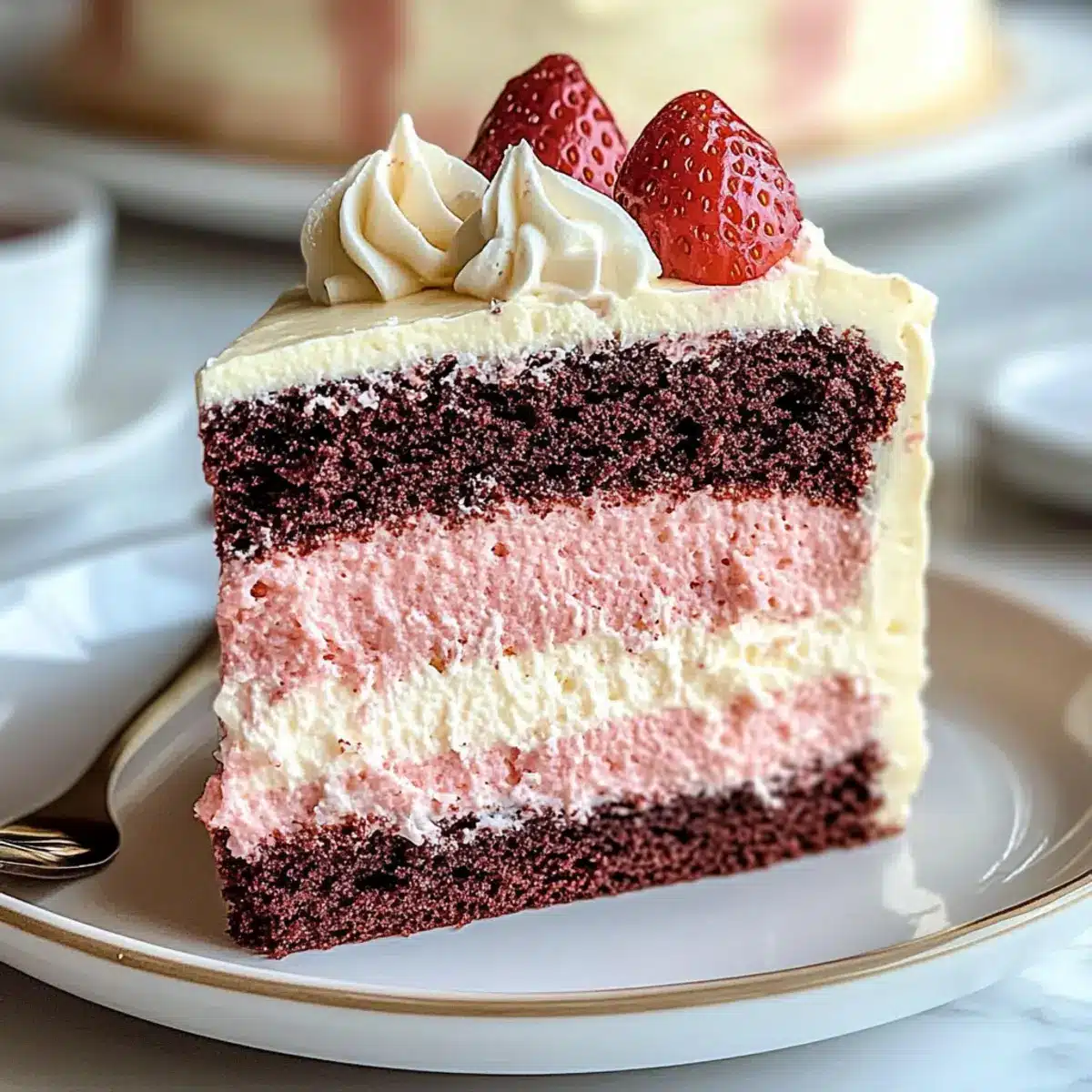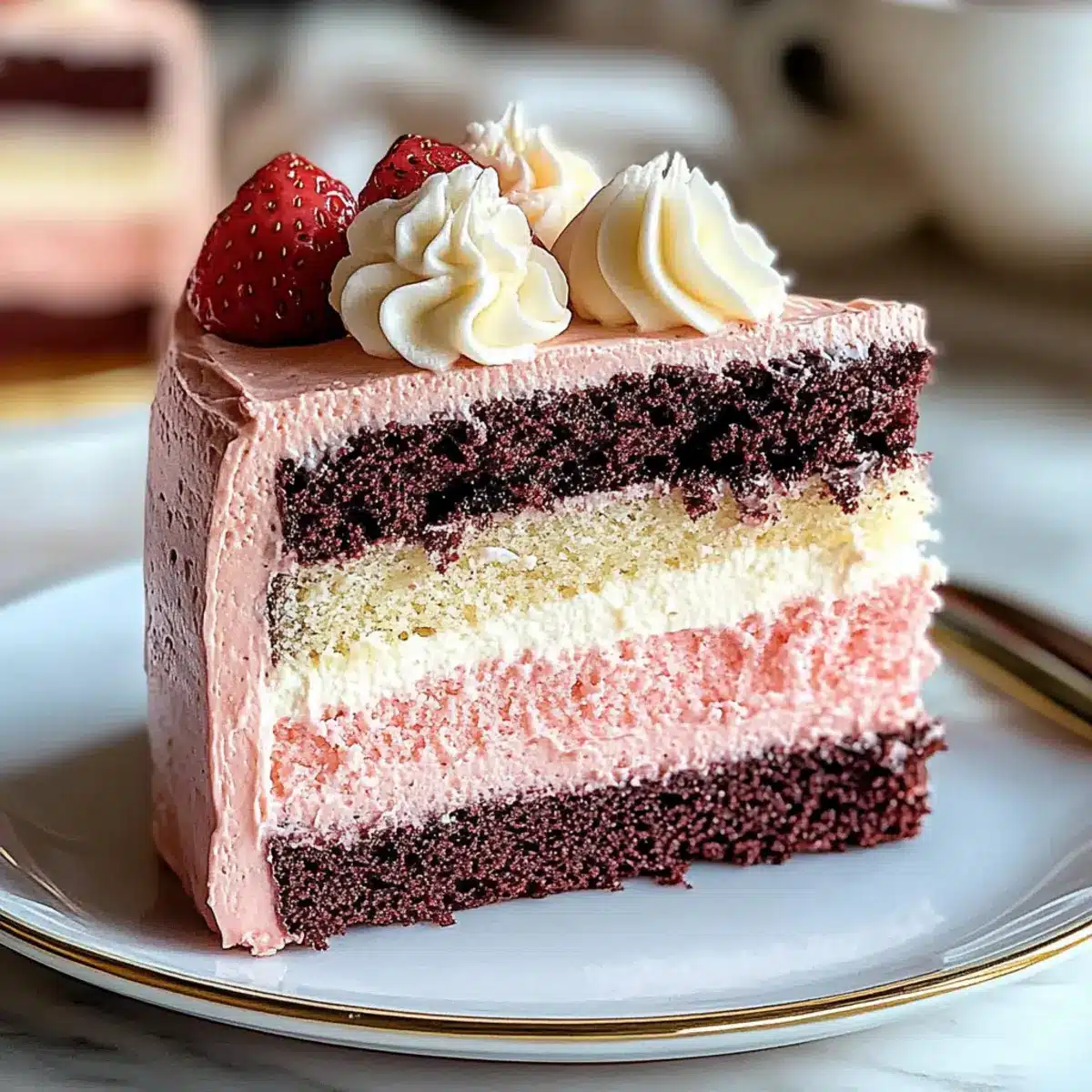 Very! You can customize this Neapolitan cake to accommodate various dietary needs. Use gluten-free flour for a gluten-free version, almond or oat milk for a dairy-free option, and vegan cream cheese for frosting that suits plant-based diets. Adjusting the recipe keeps the cake delicious for everyone to enjoy!