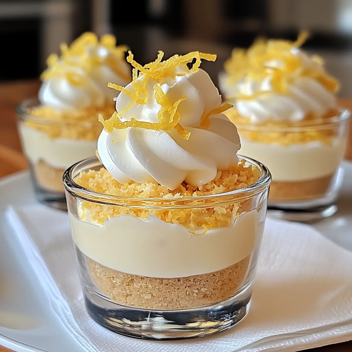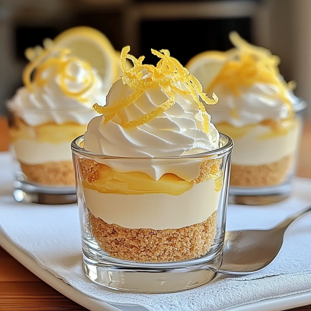 - Before serving, garnish with whipped cream, fresh lemon zest, or a lemon slice and a sprinkle of crushed graham crackers.