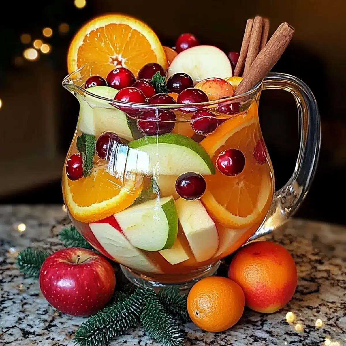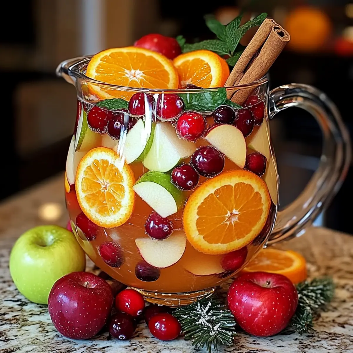 Begin by washing and slicing your seasonal fruits, including the vibrant oranges and juicy apples. Aim for bite-sized pieces to ensure they easily infuse their flavors into the drink. Place the sliced fruits in a large mixing bowl for a visual pop of color. Cranberries can be added whole for an extra festive touch.