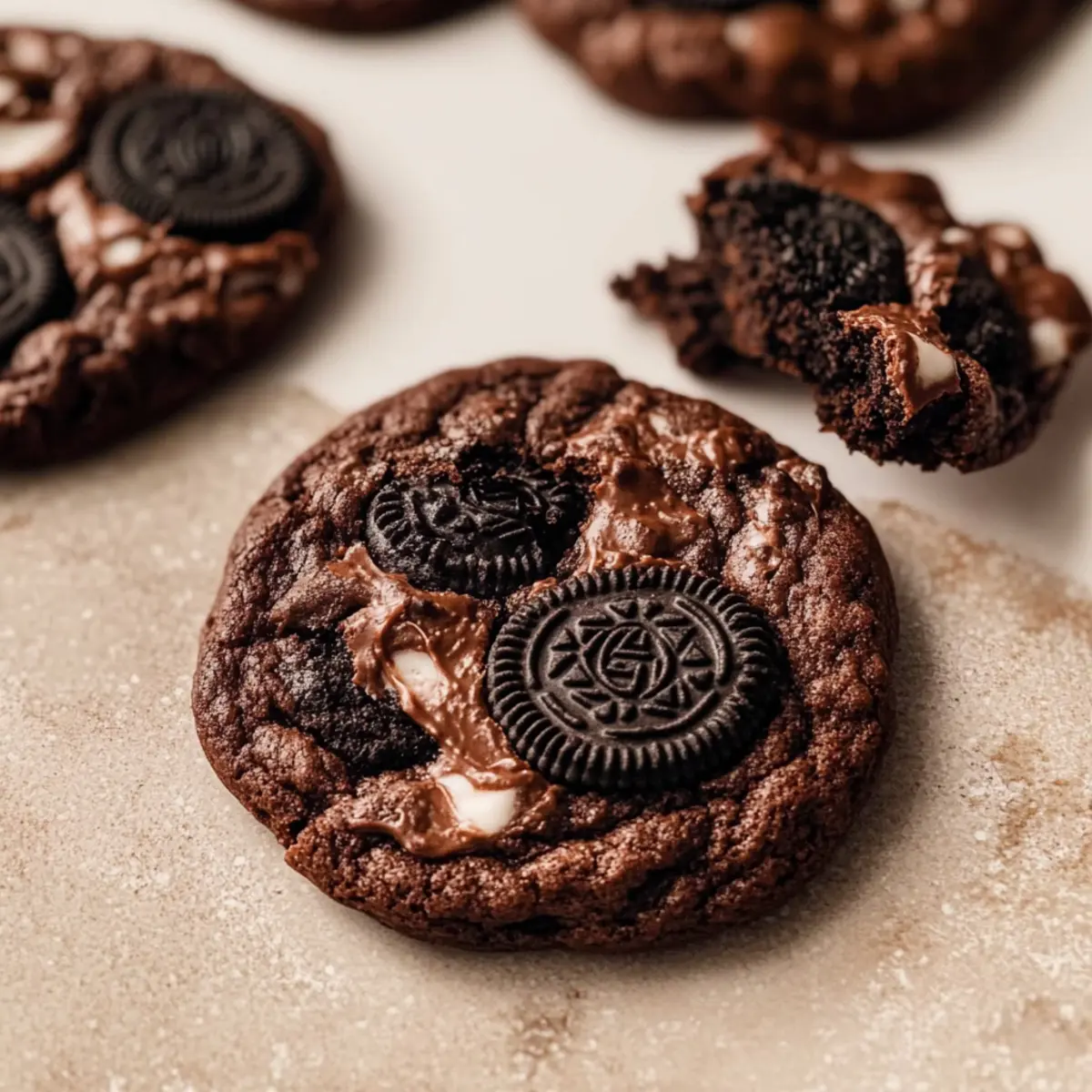 Remove the baking sheet from the oven and let the cookies cool on the sheet for about 5 minutes before transferring them to a wire rack. This allows the cookies to firm up slightly, ensuring they hold their shape. The Ultimate Chewy Oreo Brownie Cookies are best enjoyed warm while still soft and fudgy!