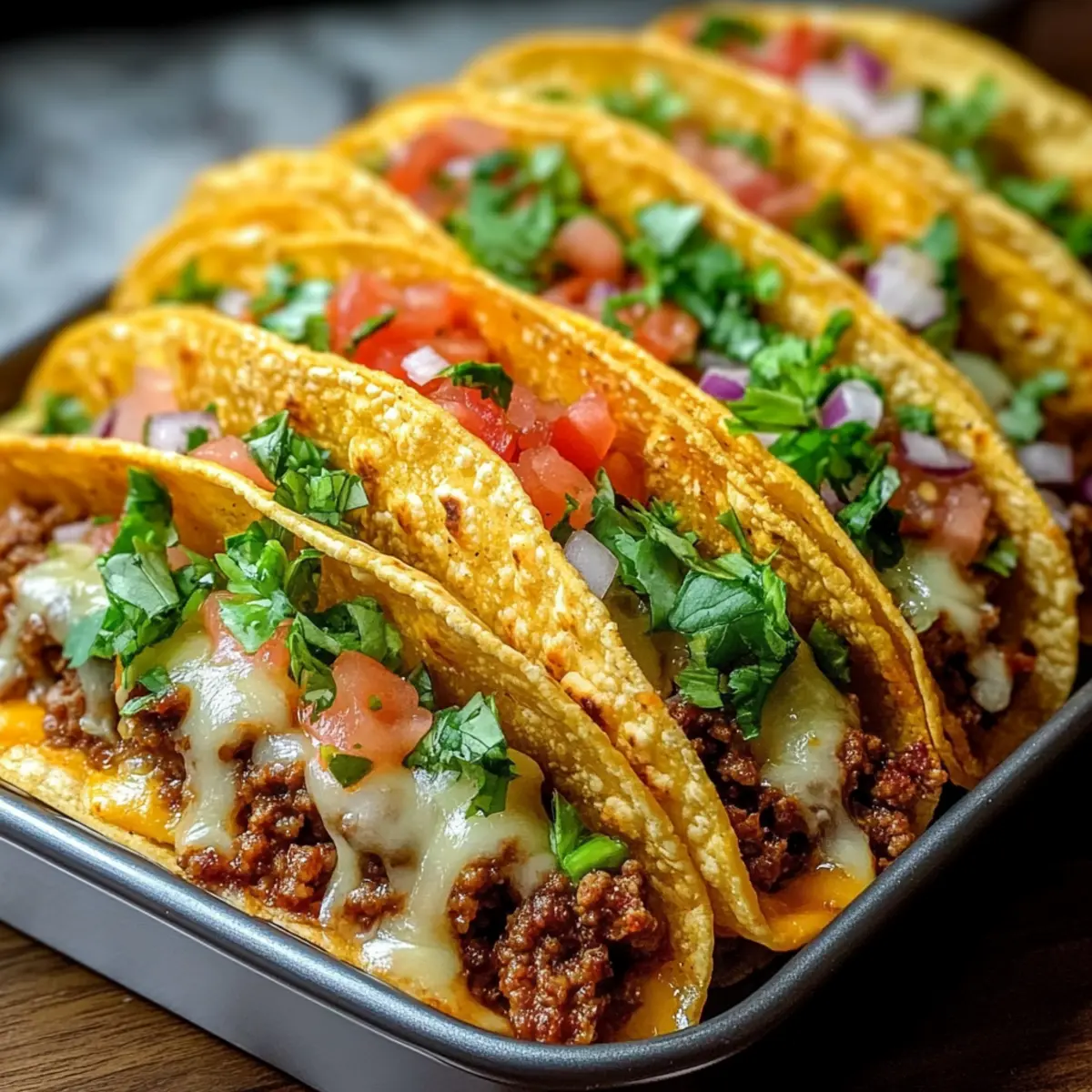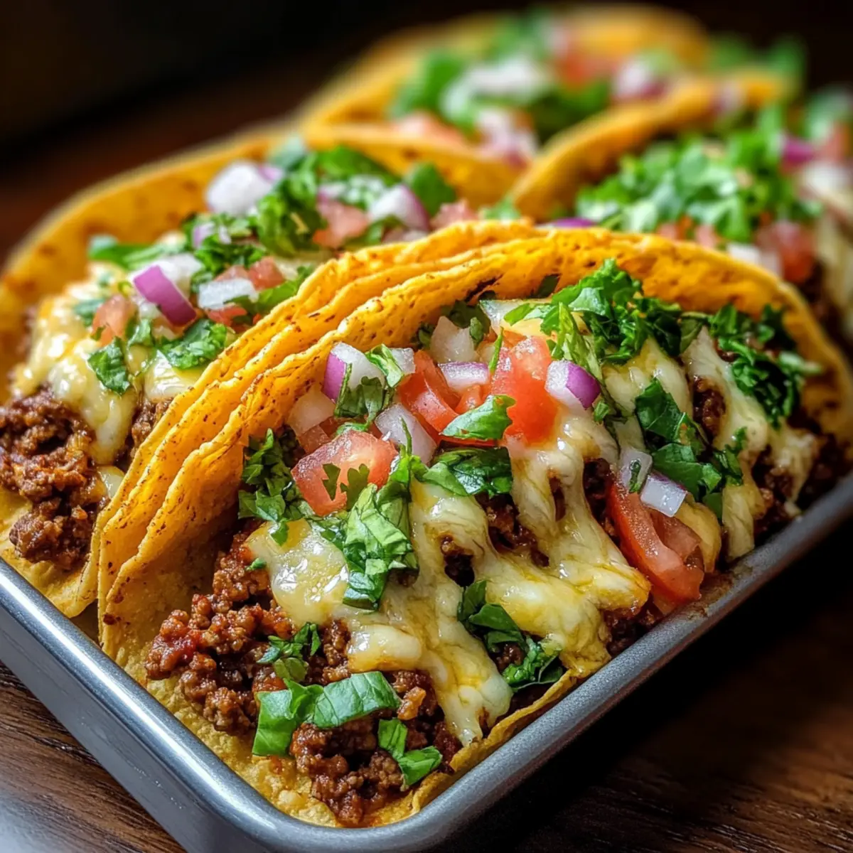 The aroma of seasoned beef mingling with melted cheese fills the air as I dive into my latest culinary endeavor—Oven-Baked Cheesy Tacos that are both crispy and loaded. In just 30 minutes, you can transform a simple weeknight dinner into a feast that brings smiles all around the table. This recipe is a game-changer, offering a fun and easy way to serve a delicious meal that pleases even the pickiest eaters. Plus, you have the flexibility to swap in ground turkey, chicken, or even plant-based proteins, making it a versatile option for all dietary preferences. What’s not to love? These tacos promise crunchy goodness with each bite, and I can’t wait to share my favorite toppings with you! Curious about how to whip up this quick meal? Let’s dive in!