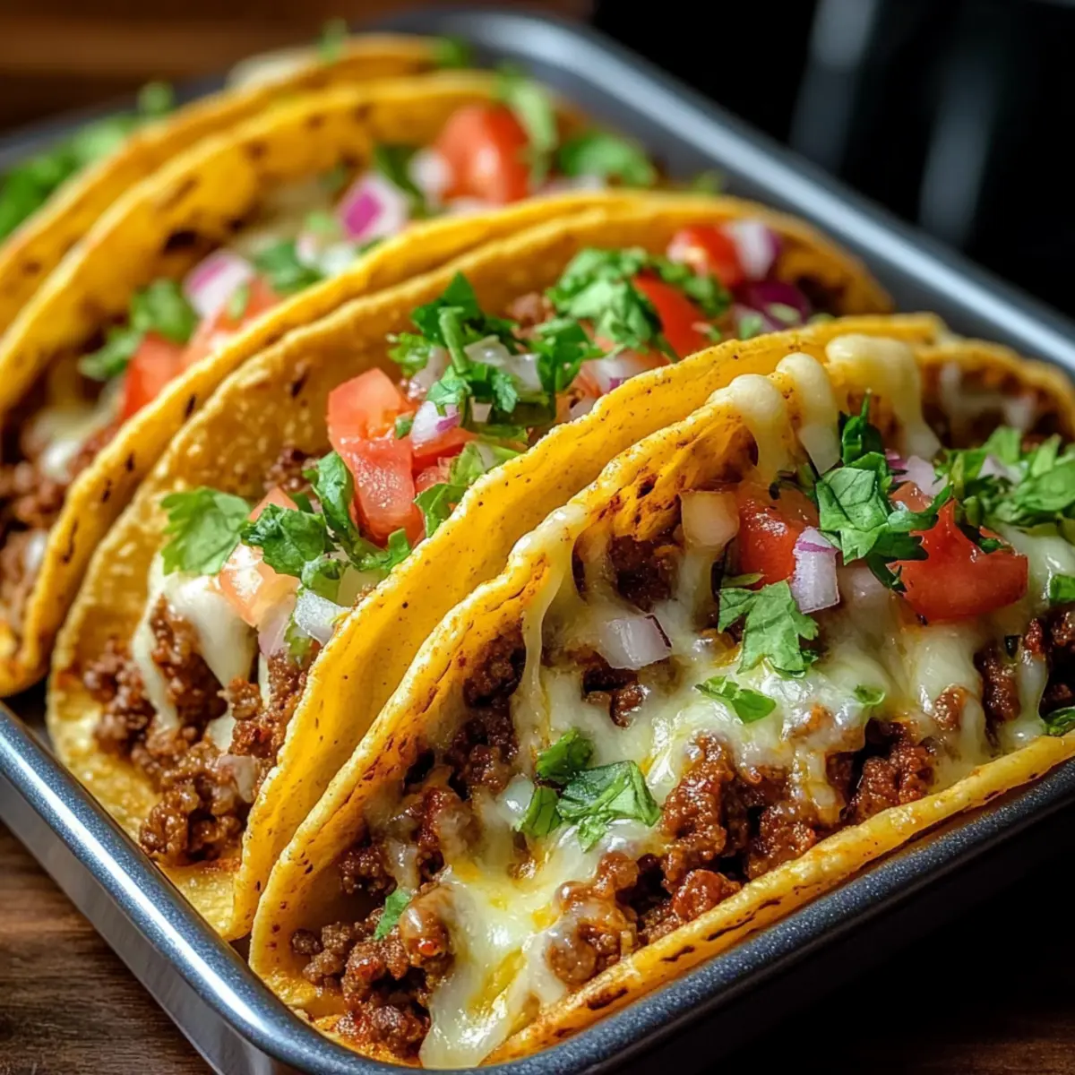 Crispy Delight: Enjoy a satisfying crunch with every bite, enhanced by the crispy taco shells and melted cheese; it’s a match made in taco heaven!