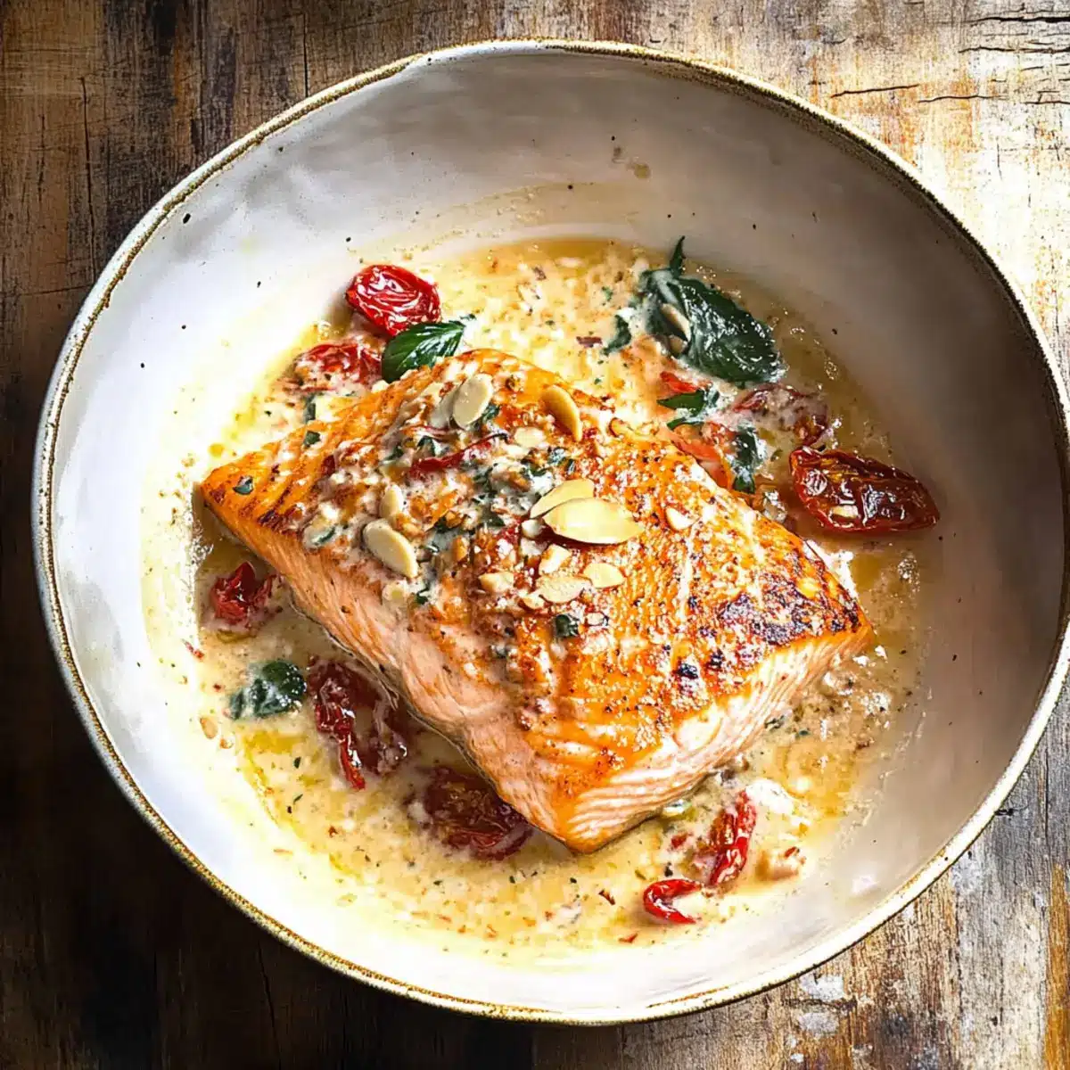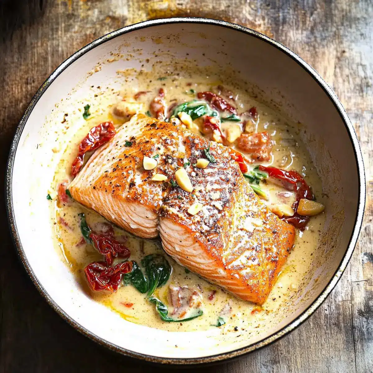 Pan Seared Salmon in Garlic Mascarpone Sauce Bliss