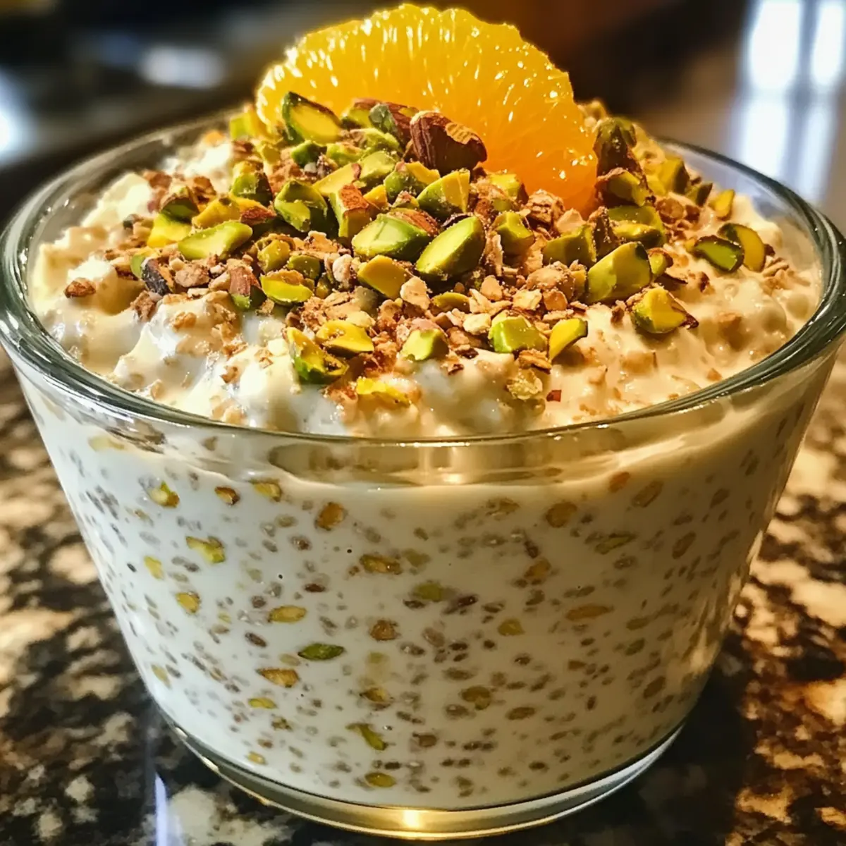 - Serve by spooning into bowls or jars and topping with fresh orange segments and extra chopped pistachios.