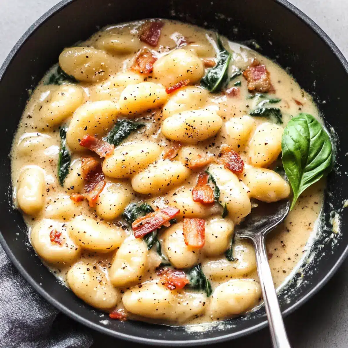 Satisfy Your Cravings with Potato Gnocchi in Bacon Spinach Cream Sauce