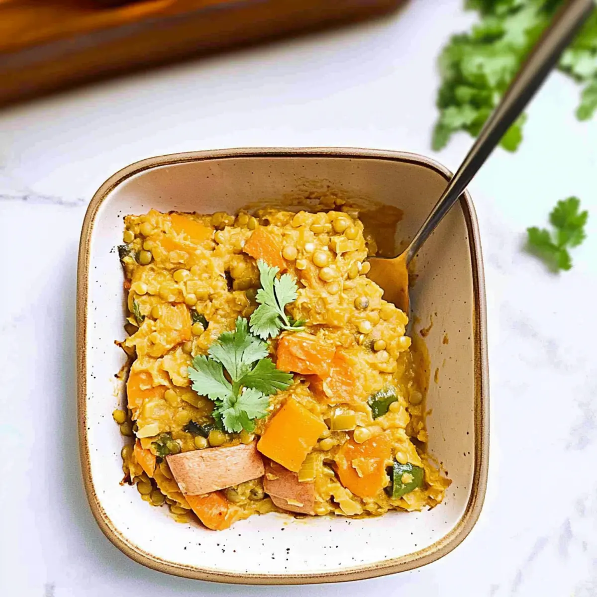 Remove the casserole from the oven, letting it cool slightly before serving. Garnish generously with chopped cilantro and lime wedges for a fresh and zesty finish. This Vegetarian Red Lentil Casserole is now ready to delight your family with its warm spices and comforting flavors, perfect for your weeknight dinner!