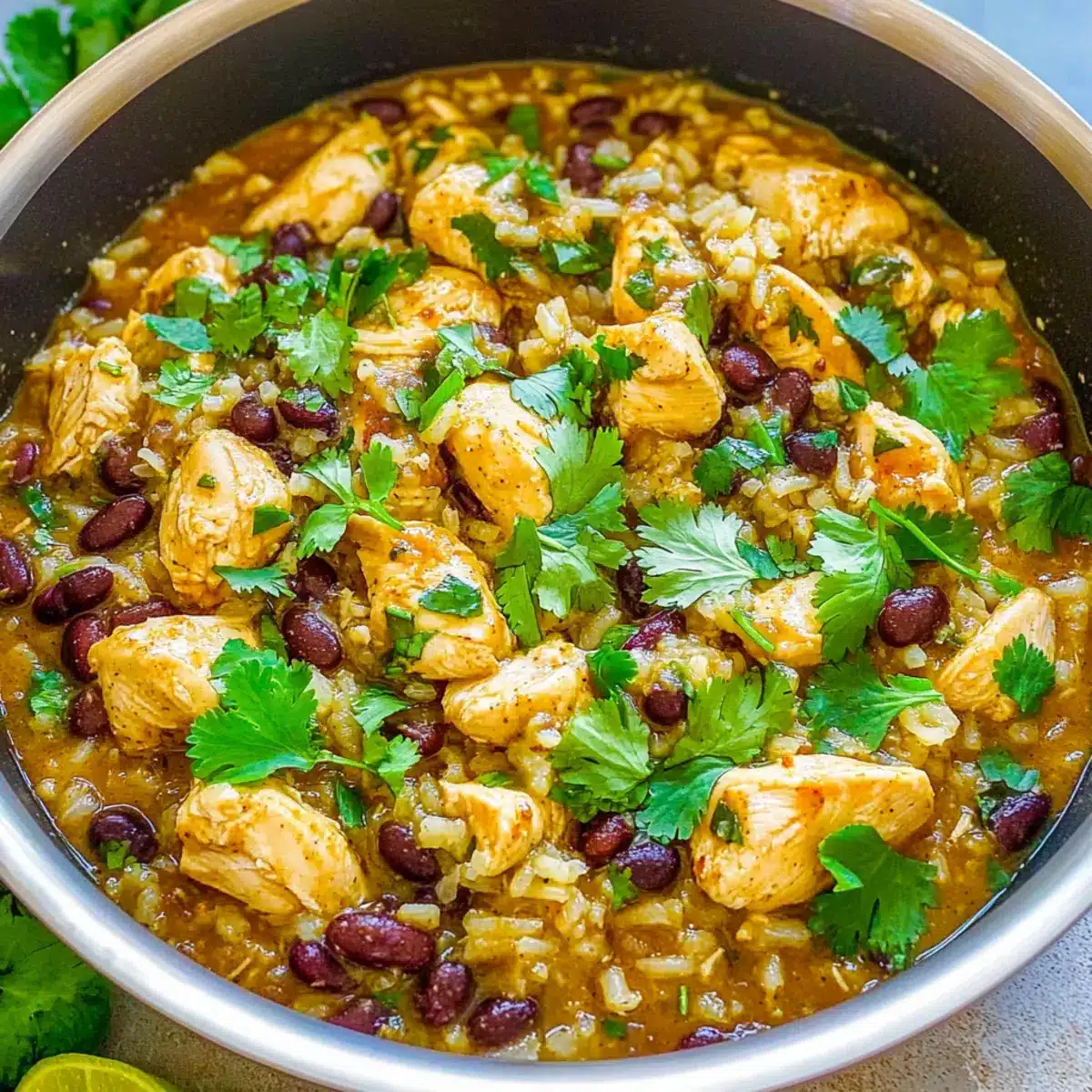 Add 2 tablespoons of fresh lime juice and 2-4 tablespoons of chopped fresh cilantro to the skillet. Gently stir to incorporate, adjusting salt and pepper to taste. This step will elevate your Salsa Verde Chicken, Rice, and Beans with fresh, zesty notes, making it a delightful one-skillet meal.
