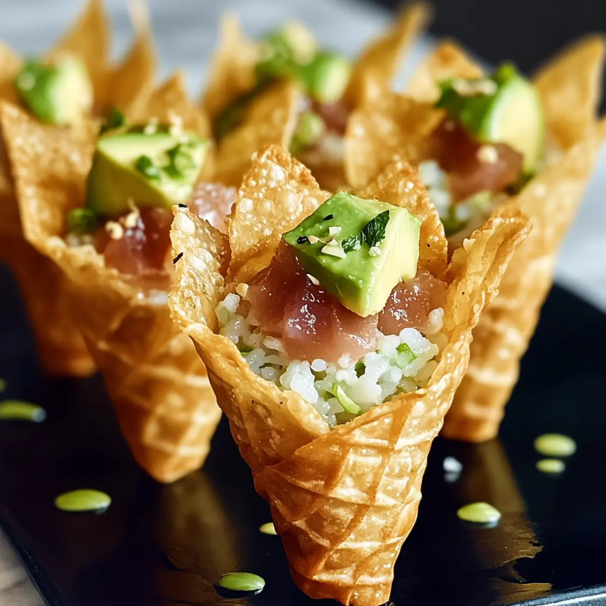 • Flavor Substitutions: Feel free to swap out proteins or veggies based on your preferences; creativity leads to the tastiest Sushi Wonton Cones!