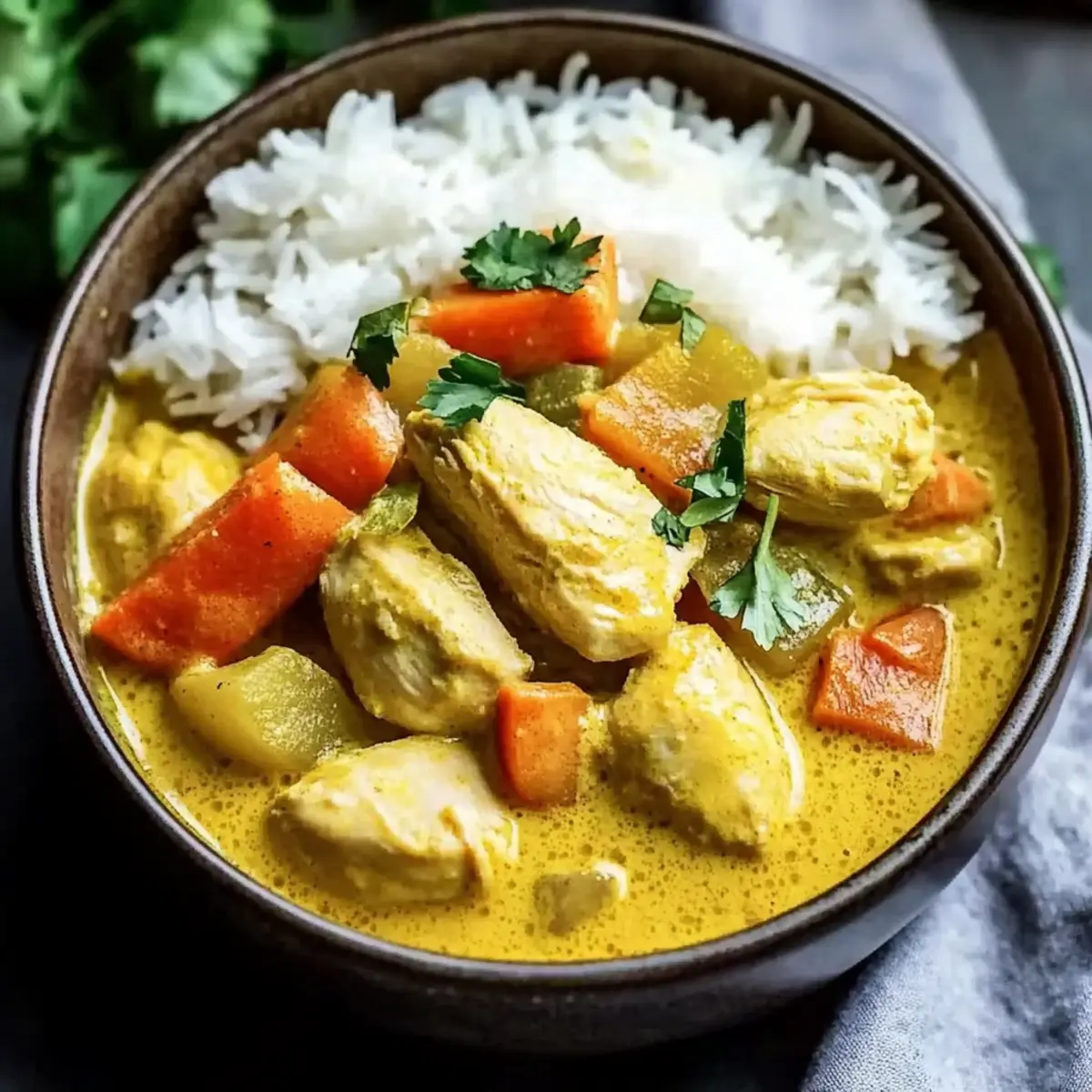 As I stood in my kitchen, the tantalizing aroma of spices wafted through the air, instantly transporting me to the bustling streets of Thailand. This Authentic Yellow Chicken Curry with Coconut Milk is my answer to anyone craving a comforting homemade dish that warms not just the belly, but the heart, too. With rich and creamy coconut milk embracing tender chicken, vibrant vegetables, and heartwarming potatoes, this dish is as nourishing as it is delicious. What I love most is how easy it is to customize—swap in your favorite proteins or seasonal veggies, and you’ve got an effortless, crowd-pleasing meal ready in no time. Perfect for busy weeknights or a cozy weekend gathering, this recipe brings the essence of authentic Thai curry right to your dining table. Are you ready to dive into the flavorful world of homemade curry?